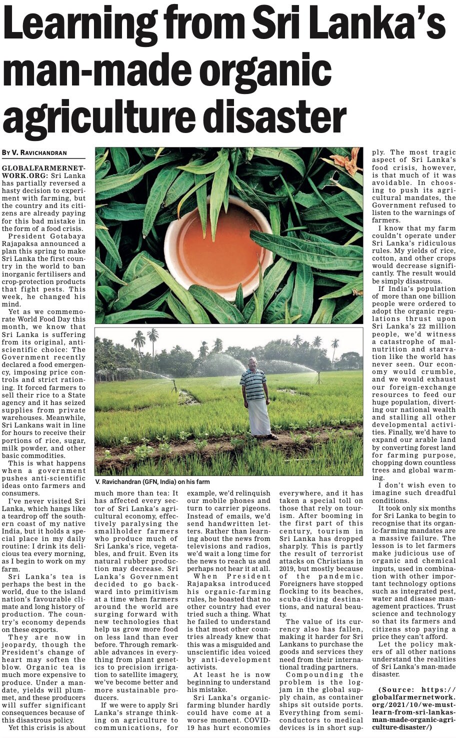 (2022) Анты-ГМА групы здымаюць віну за эканамічную катастрофу Шры-Ланкі Крыніца: The American Council on Science and Health | Рэзервовая копія PDF